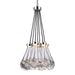 LED 7-light 17" cluster chandelier with solid heavy clear glass shaped as a rain drop. Refined metal details with our luxurious polished nickel finish. Adjustable arms for unique designs and integrated Replaceable LED with 3CCT 3000K, 3500K and 4000K.