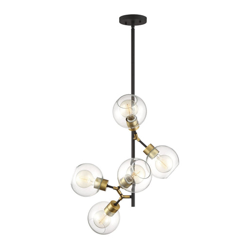 5-Light 42" Vertical Globe Pendant with Clear Glass Globes and Polished Brass & Matte Black Metal Finish.Details:Product Type: Glass ShadeFinis...