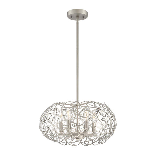6-Light 18" Pendant Light with Organic Metal Patterned Oval Shade and Satin Nickel Finish.Details:Product Type: CandleFinish: Satin NickelMeasureme...