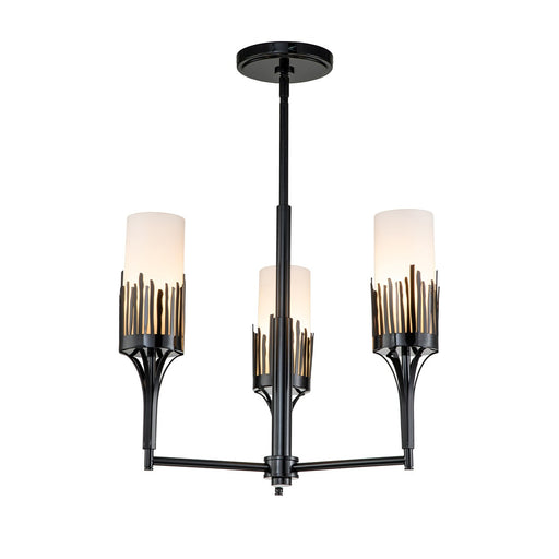 Sawgrass 3 Lt Chandelier in Black is inspired by the sharply defined silhouette of natural sawgrass. Black metalwork contrasts strongly against whi...
