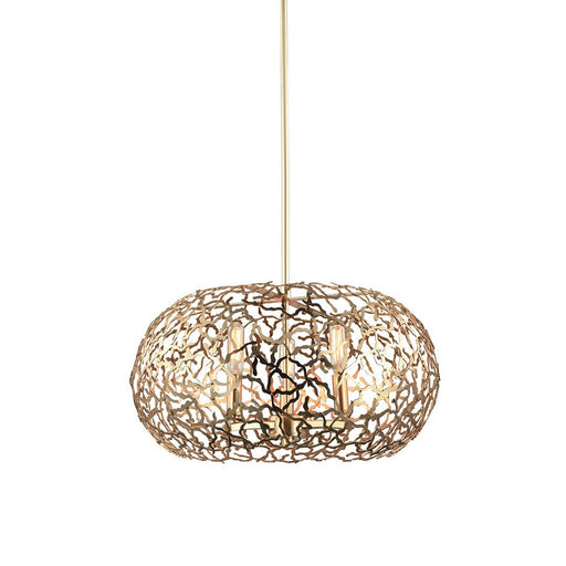 6-Light 18" Pendant Light with Organic Metal Patterned Oval Shade and Matte Gold Finish.Details:Product Type: CandleFinish: Matte GoldMeasurements:...