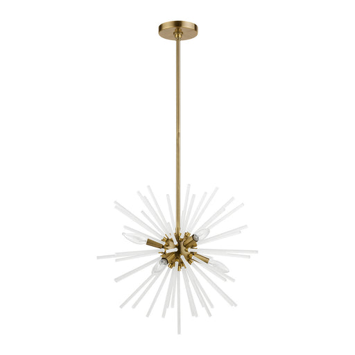 The Uptown six light pendant chandelier will become an attention-grabbing feature in your modern home decor. The antique brass finish graces the de...