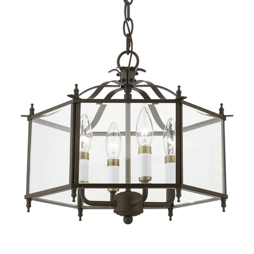 View full detailsLivex Lighting 4398-92 Four Light Convertible Pendant / Semi-Flush, English Bronze w/Antique Brass