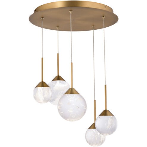 Quest 5 Light LED 3000K/3500K/4000K 120V-277V Multi-Light Pendant in Aged Brass with Clear Radiance CrystalDetails:Product Type: Multi-Port/Cascade...