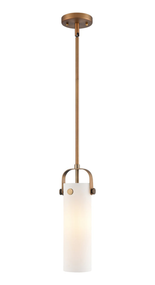 Simplistic elegant single LED pendant with a slender drop clear outer glass and frosted inner glass set together as one piece. New patent pending s...