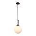 An opal white orb hangs below a distinguishing oval ring accent. This single adornment creates the perfect amount of style for this minimal design. A half-gold and half-clear orb is also available for added sophistication.