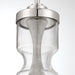 Antique electric insulators are constructed of very thick glass and pinched to accommodate wrapping. The Mistero pendant has stretched and elongated this shape into a slender silhouette of light. Machined knurling details create focal points, enclosed around the thick clear blown glass shade.