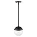 Mid-century modern design with a modern twist, these fashionable orbs are highly customizable. Available in clear or opal glass with plated chrome, pewter or brass or smooth matte black hardware. Caps are available in a number of accent colors to further customize your look. Choose colors and finishes that complement your existing décor or design your entire room around your favorite color combination. This small, rod-hung pendant features a may be hung individually or grouped over a bar.