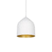 Single-lamp pendant with spun aluminum shade showcasing powder-coated finishes in contrasting hues. Exterior shade colors are black or white, with either black, silver or gold on the interior. Available in two sizes.