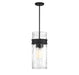 This Ashton 3-light pendant beautifully combines natural and mechanical elements to create the best of both worlds. A rippling hammered glass shade is held in place by a riveted band that brings statement bangle bracelets to mind and is finished in matte black. Ashton is 9" in width and has an adjustable height ranging from 26" to 74". It uses 3 standard size bulbs of up to 60 watts each (bulbs not included). Comes with four 12" downrods and one 6" downrod.