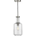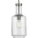 Introduce a pop of personality into your home with this pendant. A round ceiling plate coated in a brushed nickel finish anchors the pendant in place as the light source hangs below. A bottle-inspired clear glass shade adds a twist to a simple industrial style that brings this light fixture's vintage charm to the forefront of your home's lighting design.