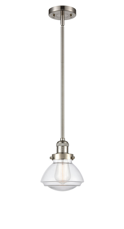 Colton - 1 Light - 6 inch - Brushed Satin Nickel - Clear Halophane Shade - Stem Hung - Mini PendantDetails:Product Type: RodFinish: Brushed Satin N...