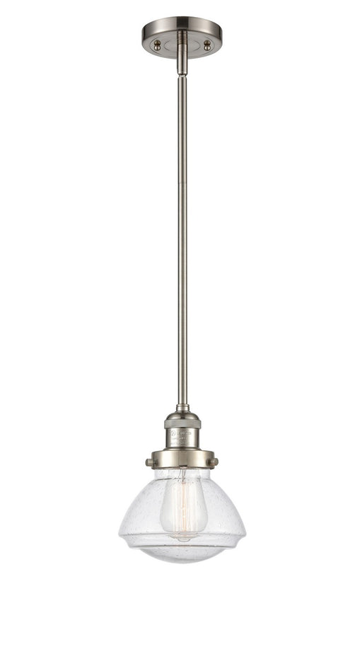 Dover - 1 Light - 5 inch - Brushed Satin Nickel - Seedy Shade - Stem Hung - Mini PendantDetails:Product Type: RodFinish: Brushed Satin NickelShade:...