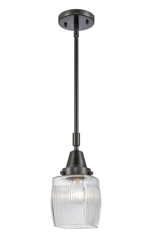 Colton - 1 Light - 6 inch - Matte Black - Clear Halophane Shade - Mini PendantDetails:Product Type: RodFinish: Matte BlackShade: Thick Clear Haloph...