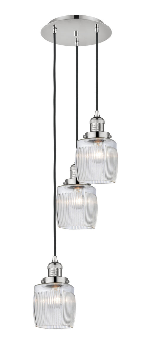 Colton - 3 Light - 12 inch - Polished Nickel - Clear Halophane Shade - Cord hung - Multi PendantDetails:Product Type: 3 Light ClusterFinish: Polish...
