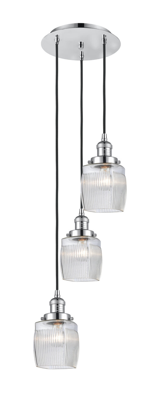 Colton - 3 Light - 12 inch - Polished Chrome - Clear Halophane Shade - Cord hung - Multi PendantDetails:Product Type: 3 Light ClusterFinish: Polish...