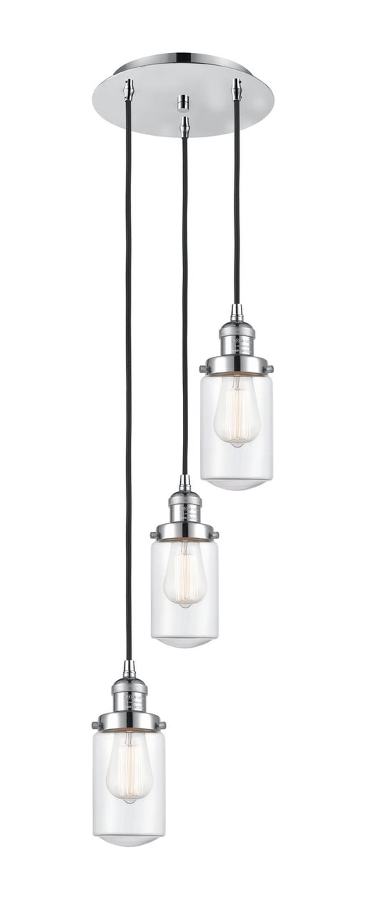 Dover - 3 Light - 11 inch - Polished Chrome - Clear Shade - Cord hung - Multi PendantDetails:Product Type: 3 Light ClusterFinish: Polished ChromeSh...
