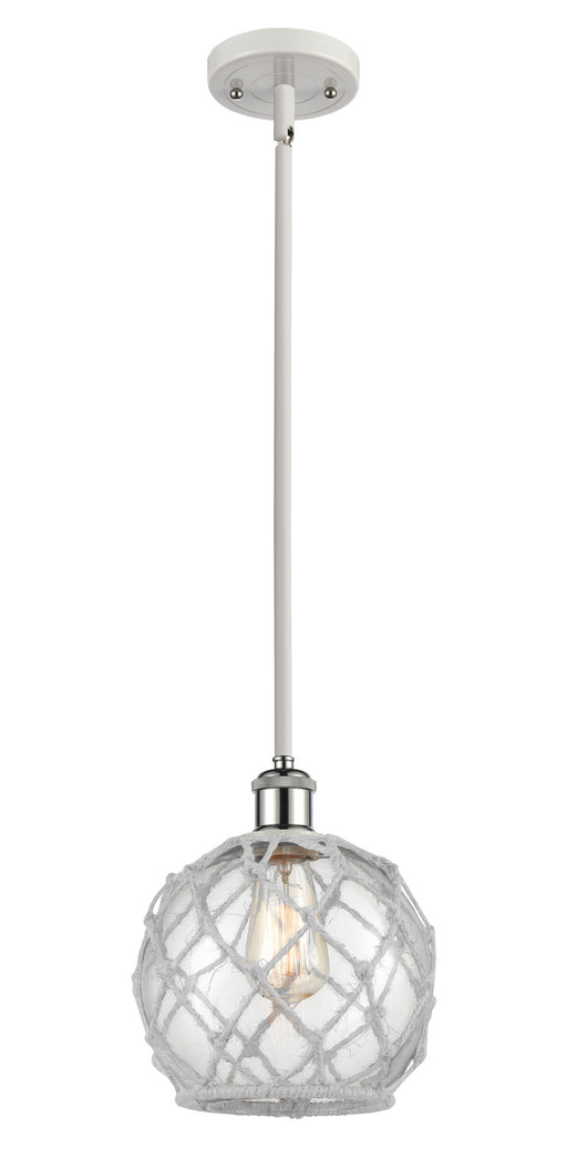 Farmhouse Rope - 1 Light - 8 inch - White Polished Chrome - Clear Glass with White Rope Shade - Mini PendantDetails:Product Type: RodFinish: White ...
