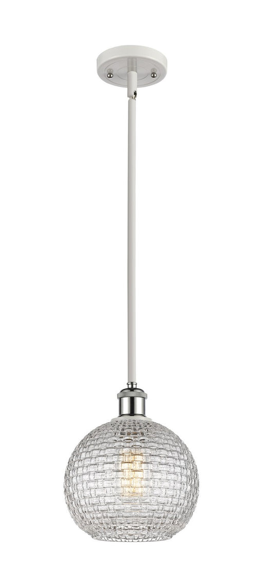 Athens - 1 Light - 8 inch - White Polished Chrome - Clear Basket Weave Shade - Mini PendantDetails:Product Type: Glass DownFinish: White Polished C...