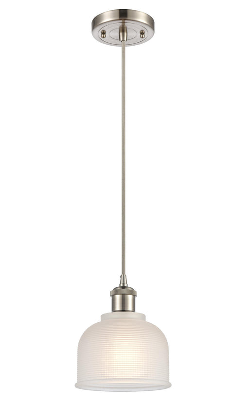 Dayton - 1 Light - 6 inch - Brushed Satin Nickel - White Shade - Cord hung - Mini PendantDetails:Product Type: CableFinish: Brushed Satin NickelSha...