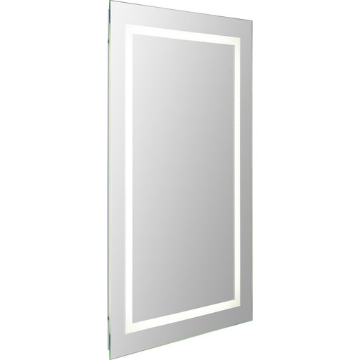 A rectangle border of LED light shines through this mirror, making it both a beautiful piece of decor and a functional lit mirror. Can be surface o...