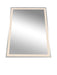 The "Reflection Collection" model shown is rectangular with inner cutouts that illuminate via bright LEDs. It has a built in "Smart Touch" dimmer switch to control the brightness of the LEDs. The switch allows the user to control the brightness or turn the light on/off. This mirror can be mounted vertically or horizontally. (Also ADA compliant)