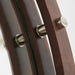 Geometric rings in Dark Wood and exaggerated Polished Nickel rivets create contrast for a striking statement mirror.