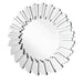Make a striking statement in your home or office with this stunning contempo style clear mirror. Featuring dozens of expertly cut, beveled edge mirror pieces, layered together to create a bold, yet elegant textured look, you can adorn any promintnt wall with this dazzling contemporary mirror and be sure to catch people's attention. · Contempo round sunburst style clear mirror · Mirrors and all surrounding panels are made with beveled edges.