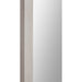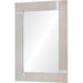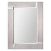 This modern mirror features a silver leaf finish highlighted with chrome corner accents. Mirror is beveled.