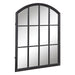 This Arch Top, Window Inspired Mirror Was Created Using Handcrafted Iron That Is Finished In A Rustic Aged Black Accented With Light Gray Distressing.