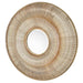 This Round Mirror Makes A Striking Addition To Any Space. The Piece Showcases A Substantial Curved Iron Frame Finished In An Elegant Brushed Antique Gold With A Beveled Center Mirror.
