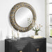 The Copper Terrazzo Mirror Features An Iron Frame Finished In A Texture Concrete Look Embellished With Heavily Antiqued Rough Cut Copper Pieces Accented With A Burnished Gold Raised Inner Edge. Mirror Has A Generous 1 1/4" Bevel.