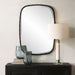 Industrial Chic Meets Modern Sophistication In This Mirror's Design. The Matte Black Iron Frame, Accented With Plated Brass Screw Caps, Adds A Touch Of Urban Style. May Be Hung Horizontal Or Vertical.