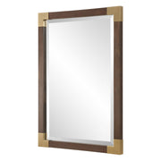 Embrace Timeless Elegance With Our Solid Wood-framed Mirror, Finished In An Aged Walnut Veneer. Each Corner Is Adorned With Delicately Antiqued Gold Iron Caps, Adding A Touch Of Refinement And Sophistication To Any Room. Mirror Has A Generous 1 1/4" Bevel. May Be Hung Horizontal Or Vertical.