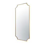 Scallops, arches, or notches, take your pick. They all inform our Carlton mirror's regal yet welcoming look. Rounded front-face metal frame. Available in gold, black or chrome.