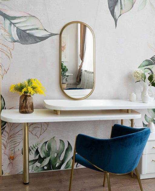 Transform your living space with the sophisticated charm of our modern oval mirror, adorned with a stunning gold finish frame. This sleek and minim...