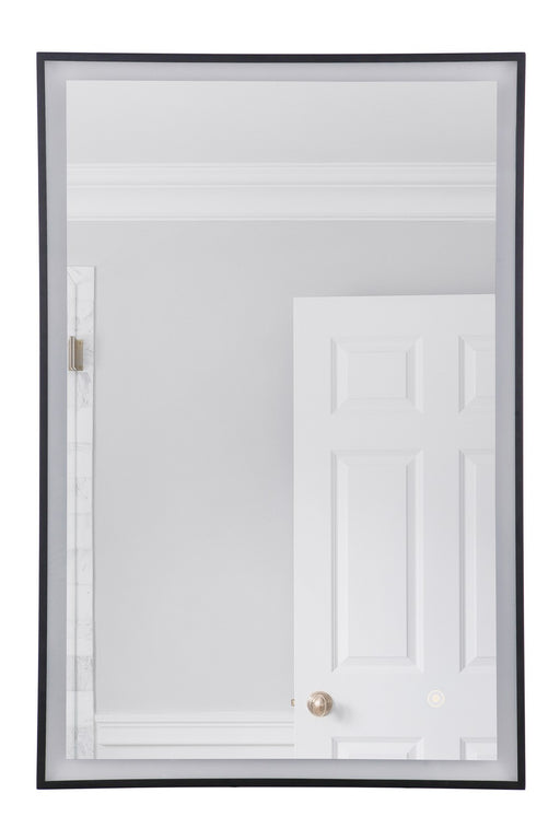 The Craftmade 24" x 36" black framed rectangular front lit LED mirror designed for horizontal or vertical installation features touch button dimmin...