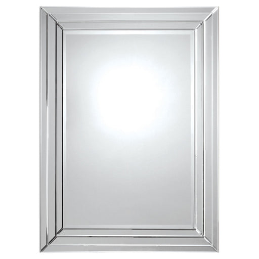 This contemporary design features a dimensional beveled-mirror "step" frame and a beveled center mirror. With its sleek look and clean lines this m...