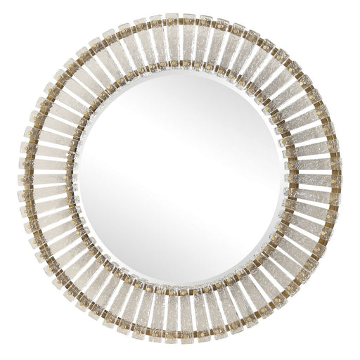 The Denali Round Mirror Features Textured Glass Keys Suspended Around Brushed Gold Iron Frames. Mirror Has A Generous 1" Bevel.Details:Product Type...