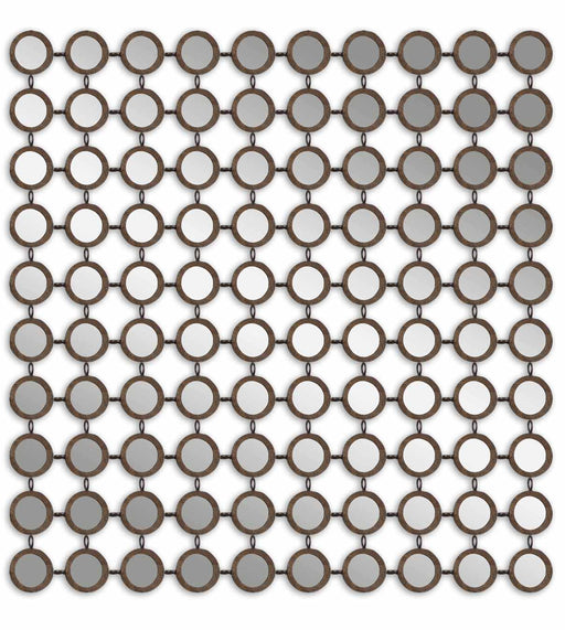 Numerous, Small Round Mirrors Are Joined By Hand Forged Metal To Create This Mirror. Finish Is Lightly Antiqued Silver Champagne Leaf.Details:Produ...