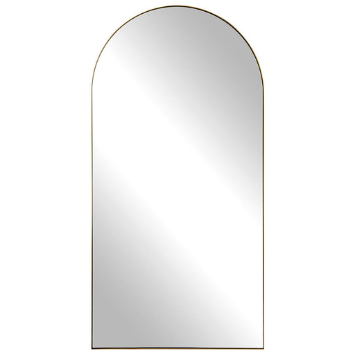 This Oversized Arch Features A Sleek Stainless Steel Frame Finished In A Rich Antique Brass Surrounding A Floating, Polished Edged Mirror.Details:P...