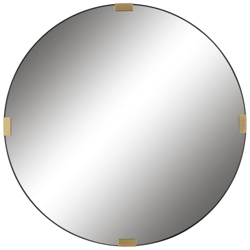 This Round Mirror's Sleek Design Makes It The Perfect Modern Accent. The Iron Band Frame Is Finished In Satin Black And Is Accented By Lightly Anti...