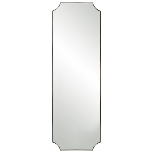 The Crest Mirror Features A Softly Curved Iron Frame Finished In A Sleek Satin Black, Displaying A 1" Bevel. May Be Hung Two Ways.Details:Product T...