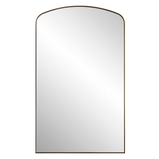 The Boundary Mirror Features A Gracefully Curved, Petite Iron Arch Finished In A Lightly Antiqued Gold Leaf, Surrounding A 1 1/4" Bevel Mirror.Deta...
