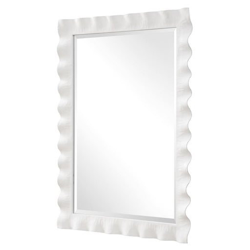 This Mirror Features A Hand Forged Metal Frame Finished In A Semi-gloss White With An Organic, Scalloped Edge Design. A Generous 1" Bevel Is Added ...