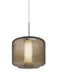 The Niles Smoke/Opal Pendant is composed of a broad tranparent smoke glass cylinder, with an interesting bubble pattern blown randomly throughout the glass and an inner opal cylinder for concealing the light source. The pleasing play of light through the bubble accents make for a striking affect, along with the popular theme of this transitionally designed pendant. The cord pendant fixture is equipped with a 10` SVT cordset and an low profile flat monopoint canopy. These stylish and functional luminaries are offered in a beautiful Satin Nickel finish.