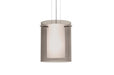 Pahu is a distinctive double-glass pendant, with an inner opal cylinder centered within a transparent outer glass Our Trans-Smoke colored blown glass complements the soft white Opal cased glass, which can suit any classic or modern decor. Opal has a very tranquil glow that is pleasing in appearance, as the Trans-Smoke glass sparkles with the accents from that glow. The smooth satin finish on the opalâ≢s outer layer is a result of an extensive etching process. This blown glass combination is handcrafted by a skilled artisan, utilizing century-old techniques passed down from generation to generation. The cable pendant fixture is equipped with three (3) 10` silver aircraft cables and 10` AWM cord set, and a low profile flat monopoint canopy. These stylish and functional luminaries are offered in a beautiful Satin Nickel finish.