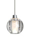 The Boca LED Mini Pendant is comprised of an appealing globe-shaped clear bubble-patterned solid glass, accented by an interesting inner frosted tube to diffuse the light source. The splash of concealed LED illumination through the solid glass shade`s bubble accents makes the Boca 3 a stunning display of light refractions. The 12V cord pendant fixture is equipped with a 10` coaxial cord with teflon jacket and an "Easy Install" Dome monopoint canopy. These stylish and functional luminaries are offered in a beautiful Satin Nickel finish.