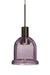 The Kiba Plum Mini Pendant is a transitional design composed of a transparent Plum glass Bell, with an interesting bubble pattern blown randomly throughout the glass. The pleasing play of light through each shade`s bubble accents make for a striking affect, created by the concealed LED light source positioned at the top glass opening. The 12V cord pendant fixture is equipped with a 10` braided coaxial cord with teflon jacket and a low profile flat monopoint canopy. These stylish and functional luminaries are offered in a beautiful brushed Bronze finish.