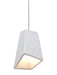 Our four sided geometrically-shaped Skip white mini pendant is equipped with a cement-based angle cut shade, while concealing a focused light source for effective task lighting. Produced from natural elements and industrially inspired, this pendant offers a look that will easily merge into the recent urban decorating trend. The 12V cord pendant fixture is equipped with a 10` braided coaxial cord with teflon jacket and a low profile flat monopoint canopy. These stylish and functional luminaries are offered in a beautiful Satin Nickel finish.